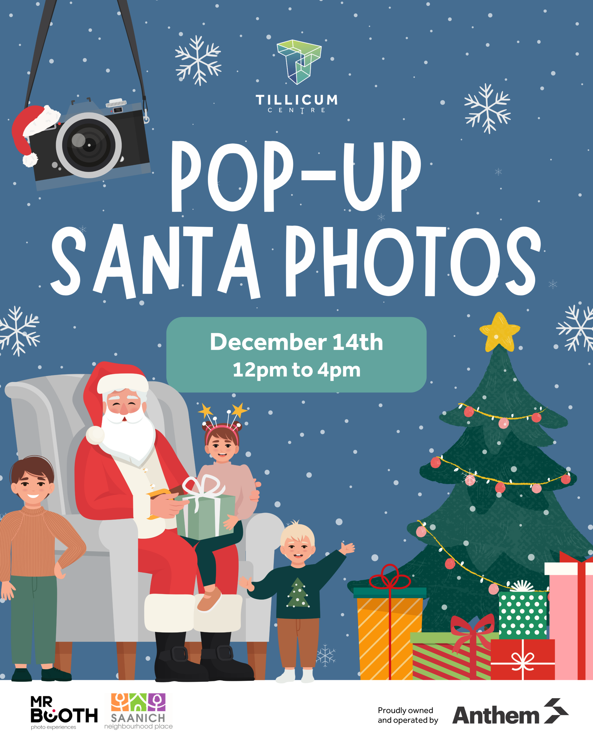 Pop-up Santa photos by donation to Saanich Neighborhood Place. It is the season of giving, and a donation of minimum $5 is appreciated! 100% of funds goes towards the organization.