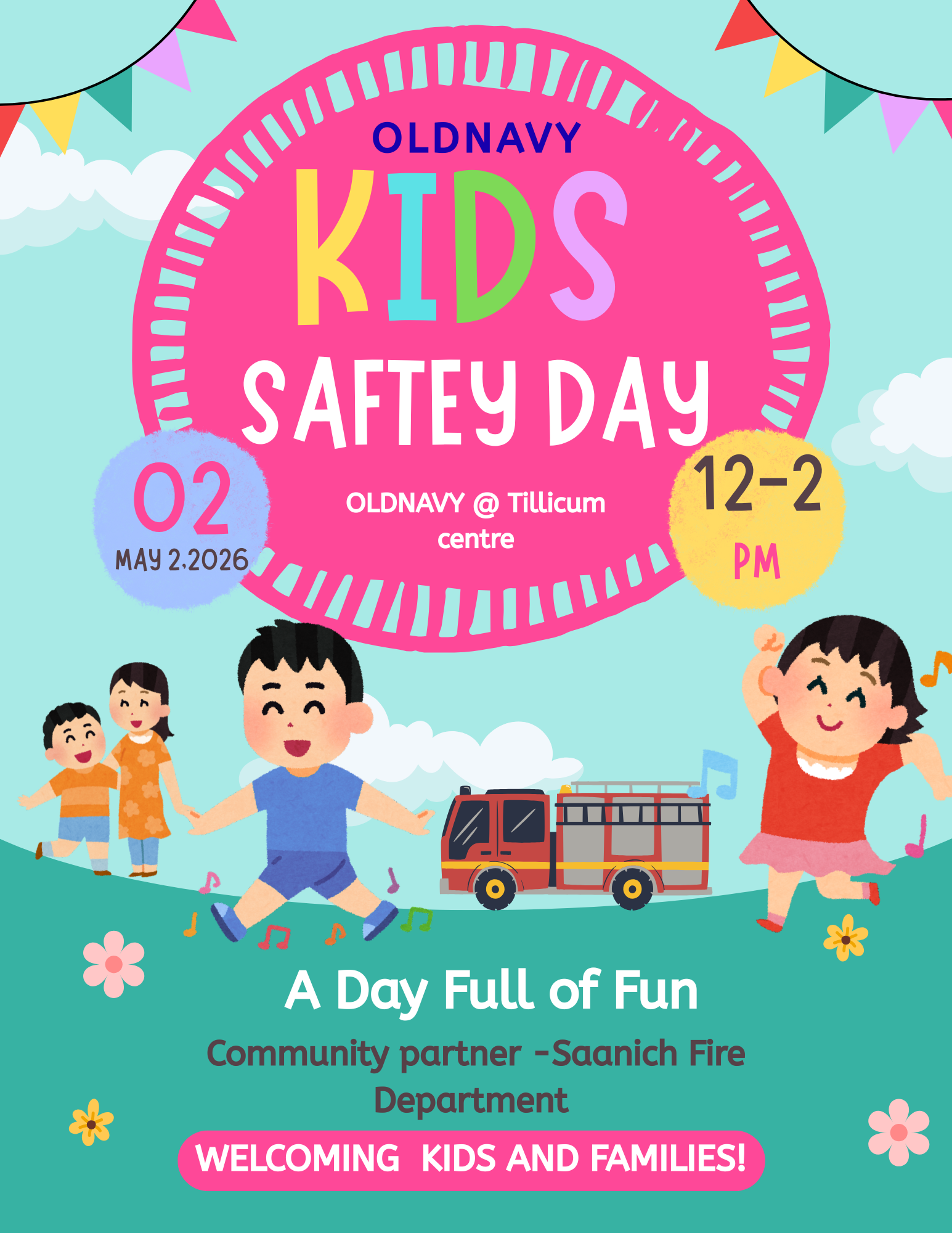 Join us on May 2nd at Old Navy Tillicum Center for a day of fun, learning, and community spirit. We are so excited to host our local Fire Department as our community partner for this year’s Kids Safety Day!